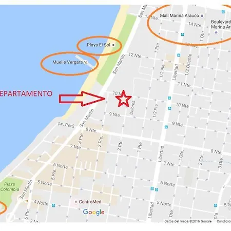 Vina Excelente, 1 Cuadra Av Sn Martin Y La Playaアパ-トの部屋は電子レンジと冷蔵庫があります. 運転して20分の所にあるビニャ・デル・マ-ル空港へは行けます.